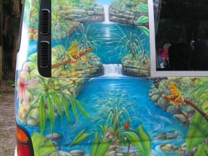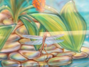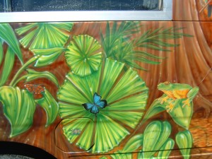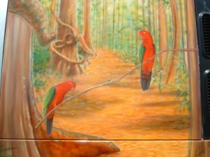 Steve Doyle began trading professionally in airbrushed murals for panels, car bonnets, whole buses, framed artworks, and the odd motorbike tank. Designs from eagles to wizards, natural landscapes filled with creatures or subtle still life wall art as inset Tuscan style windows containing of flowers in vases.